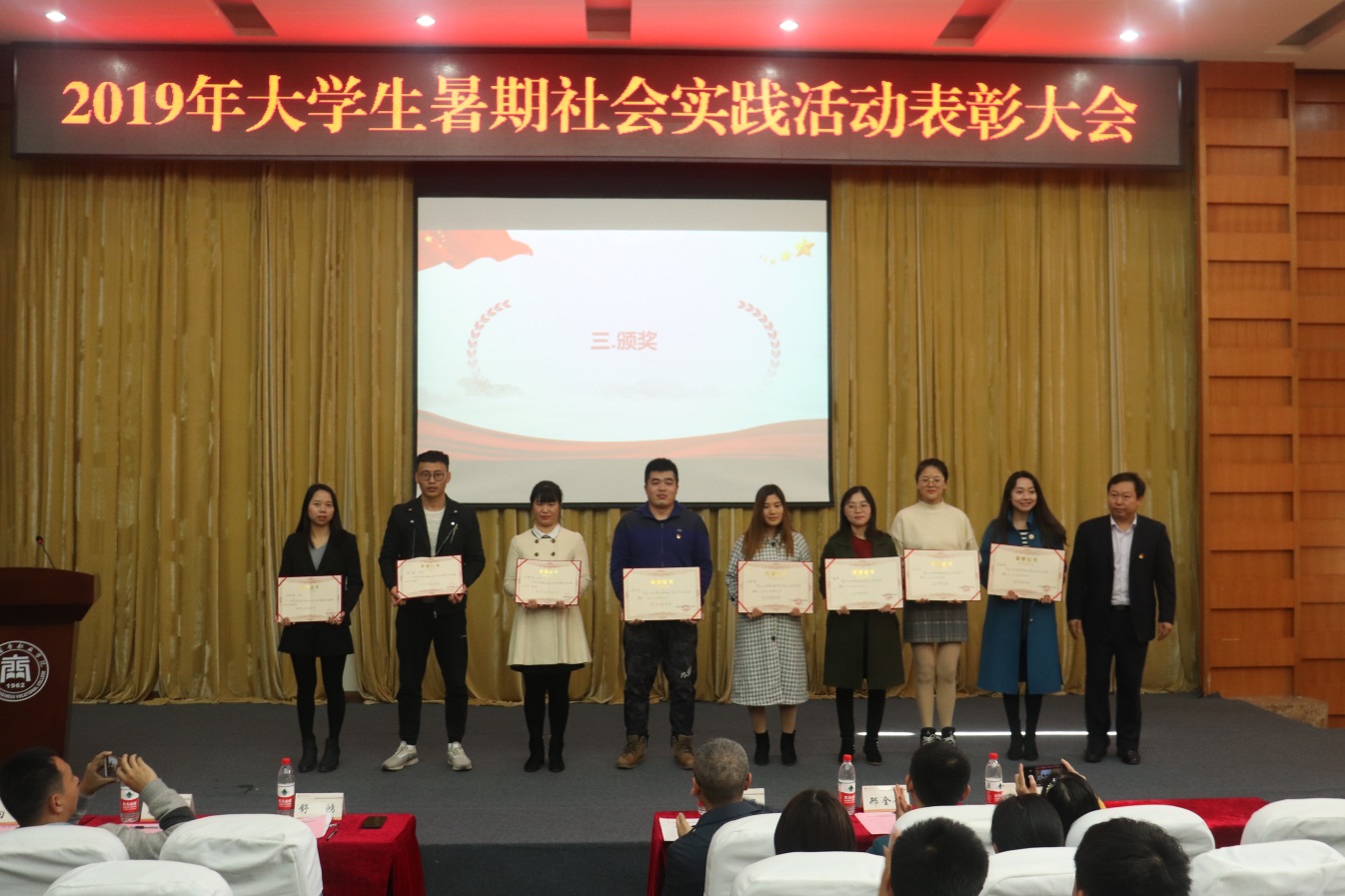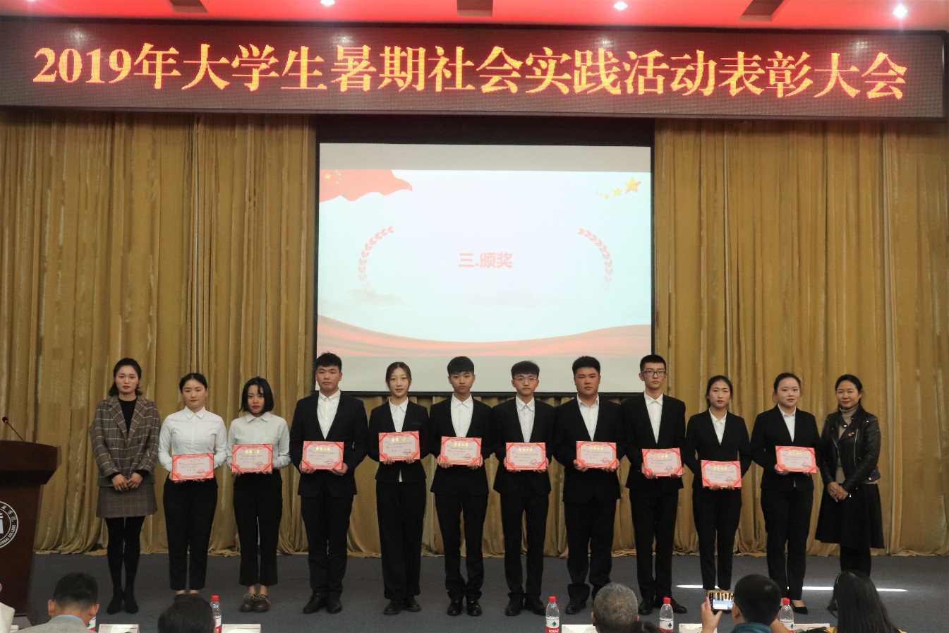 出席本次大会的有副院长舒鸿、学工部部长胡大勇、团委书记、学工部副部长邓健、团委全体人员、院系党总支负责人以及受表彰人员。此次大会由团委书记、学工部副部长邓健主持,大会分为四项议程,第一项全体人员齐唱《我和我的祖国》;大会第二项由学工部部长胡大勇宣读表彰决定;大会第三项由学校领导为暑期社会实践报告优秀学生代表、先进个人代表、优秀团队以及优秀指导老师颁奖;大会第四项由获奖的学生代表及教师代表发表获奖感言。最后由副院长舒鸿对本次社会实践活动表彰大会作讲话,舒院长提出以下三点希望:一、加强政治理论学习;二、养成良好的的生活、工作习惯;三、做好大学生职业规划。
