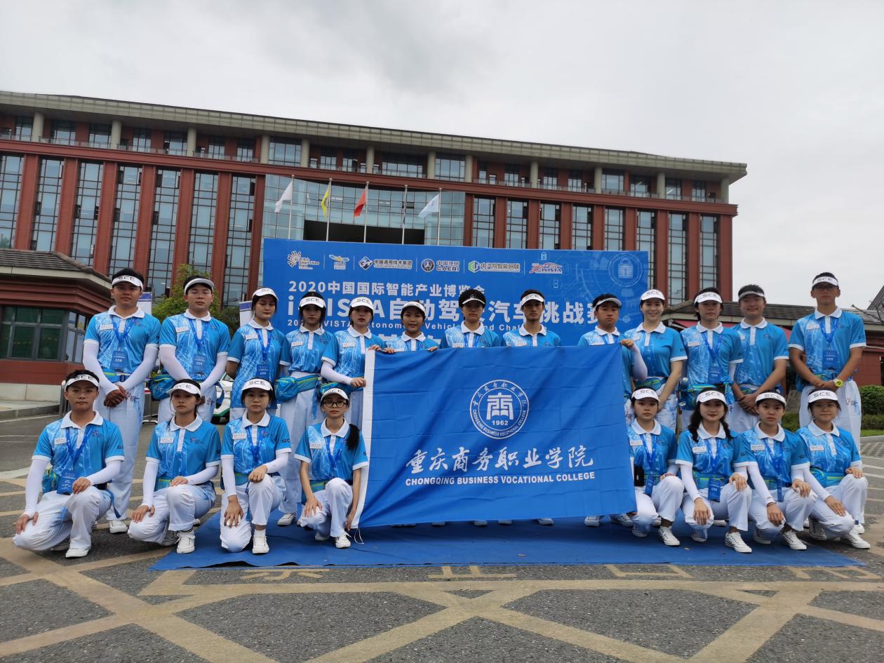 2020 线上中国国际智能产业博览会将于2020年9月12日在重庆举行。重庆商务职业学院派出22名志愿者前往中国汽研检测中心参加2020中国国际智能产业博览会i-VISTA汽车挑战赛的赛事服务。