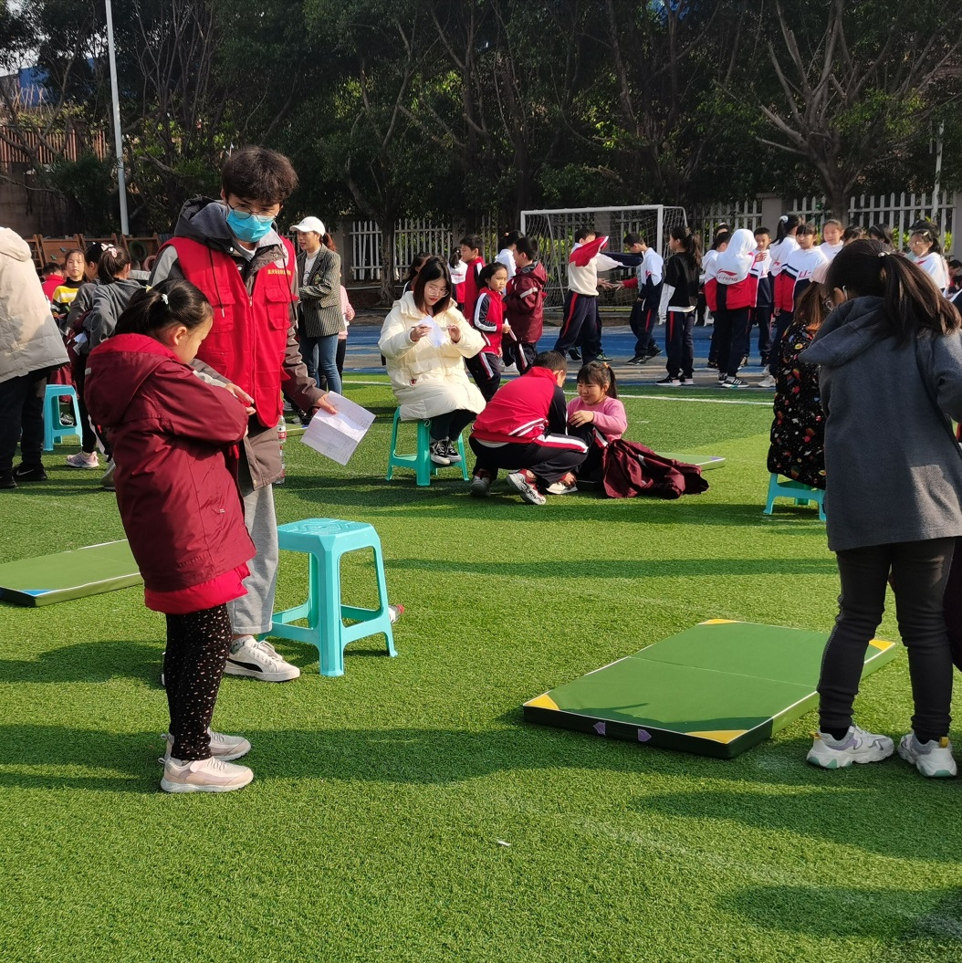 运动场上的健儿们顽强拼搏,展现了青少年该有的精神面貌。活动过程中,我校志愿者们坚守在自己的工作岗位上,始终保持着热情与耐心,身着红马甲穿梭在人群里,构成了一道道亮丽的风景线。