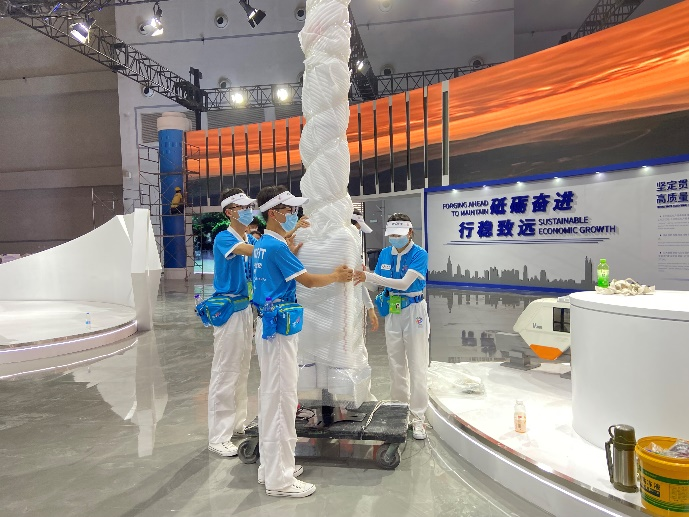 7月19日上午,展览组的志愿者前往重庆国际博览中心N1重庆馆进行培训,在现场负责人的讲解与指导下,“蓝精灵”们悉知如何对接展商、引领展品进入卸货区等系列工作,并于21日—24日服务于N1重庆馆各展品点。