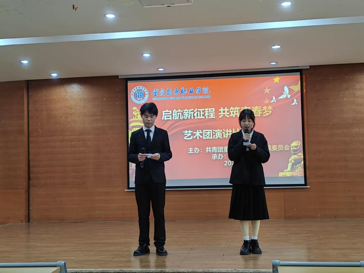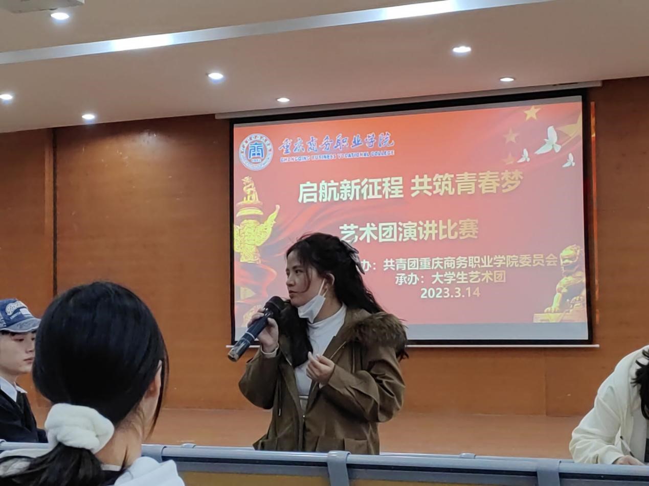 为深入宣传学习贯彻党的二十大精神,团结并引导青年学生永远跟党走、奋进新征程,展现新时代青年学生新作为、新风采。重庆商务职业学院大学生艺术团于2023年3月14日下午14:00在学院320活动室(一食堂三楼)举行了“启航新征程,共筑青春梦”的演讲比赛,参与对象为大学生艺术团全体成员。