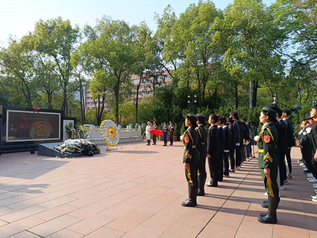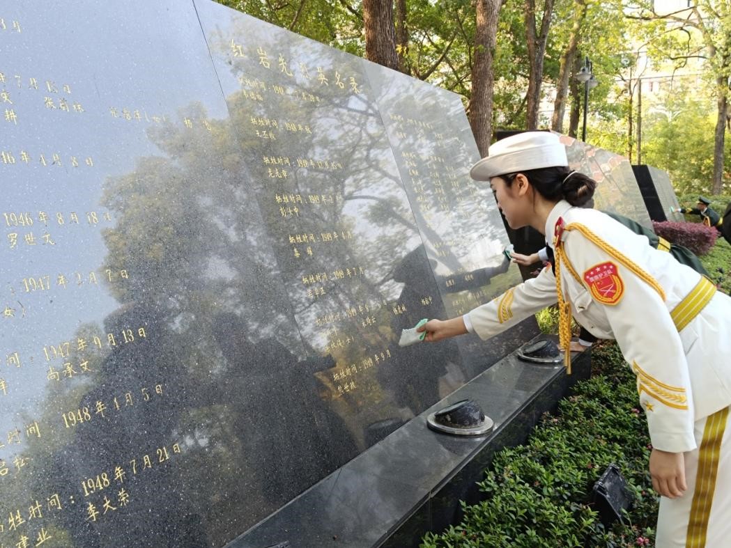 首先,在革命英雄烈士墓前,党员教师和青年学子们神情肃穆,向革命烈士默哀悼念,寄托无限哀思。随后在学生骨干代表的带领下,全体青年代表重温入团誓词,激发青年学子的责任使命感。最后,师生代表绕墓一周为革命英烈献上了自己亲手制作的小白花,并擦拭革命烈士墓碑,用这样的方式献以最诚挚的敬意,深切缅怀先烈,牢记使命担当,承续奋斗之志。