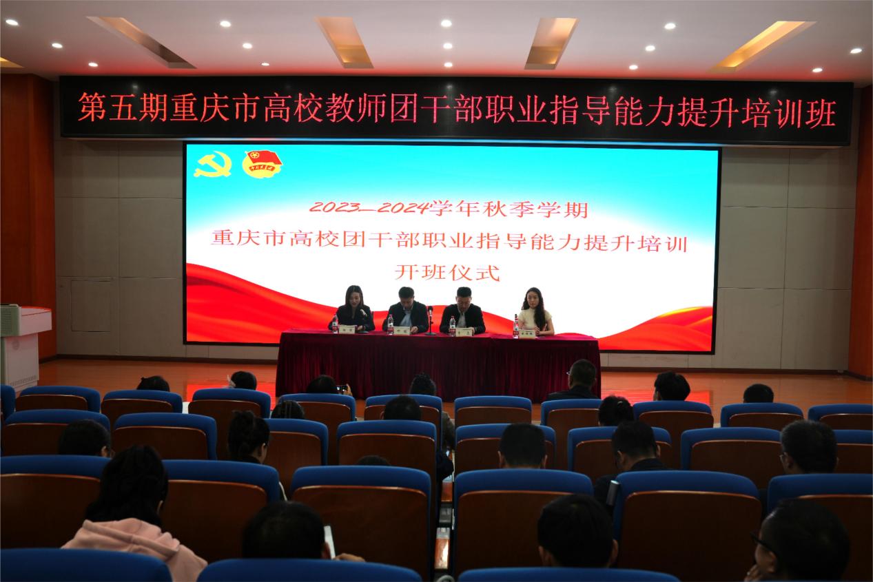 10月26日上午,由共青团重庆市委、重庆市人力资源和社会保障局主办,重庆市职业技能公共实训中心、重庆校企融合协会、重庆商务职业学院承办的2023年第五期重庆市高校团干部职业指导能力提升培训班在我校第二学术报告厅举行,来自重庆大学、西南大学、重庆师范大学、重庆医科大学、四川外国语大学等31所高校的238名教师团干部参加本次培训。