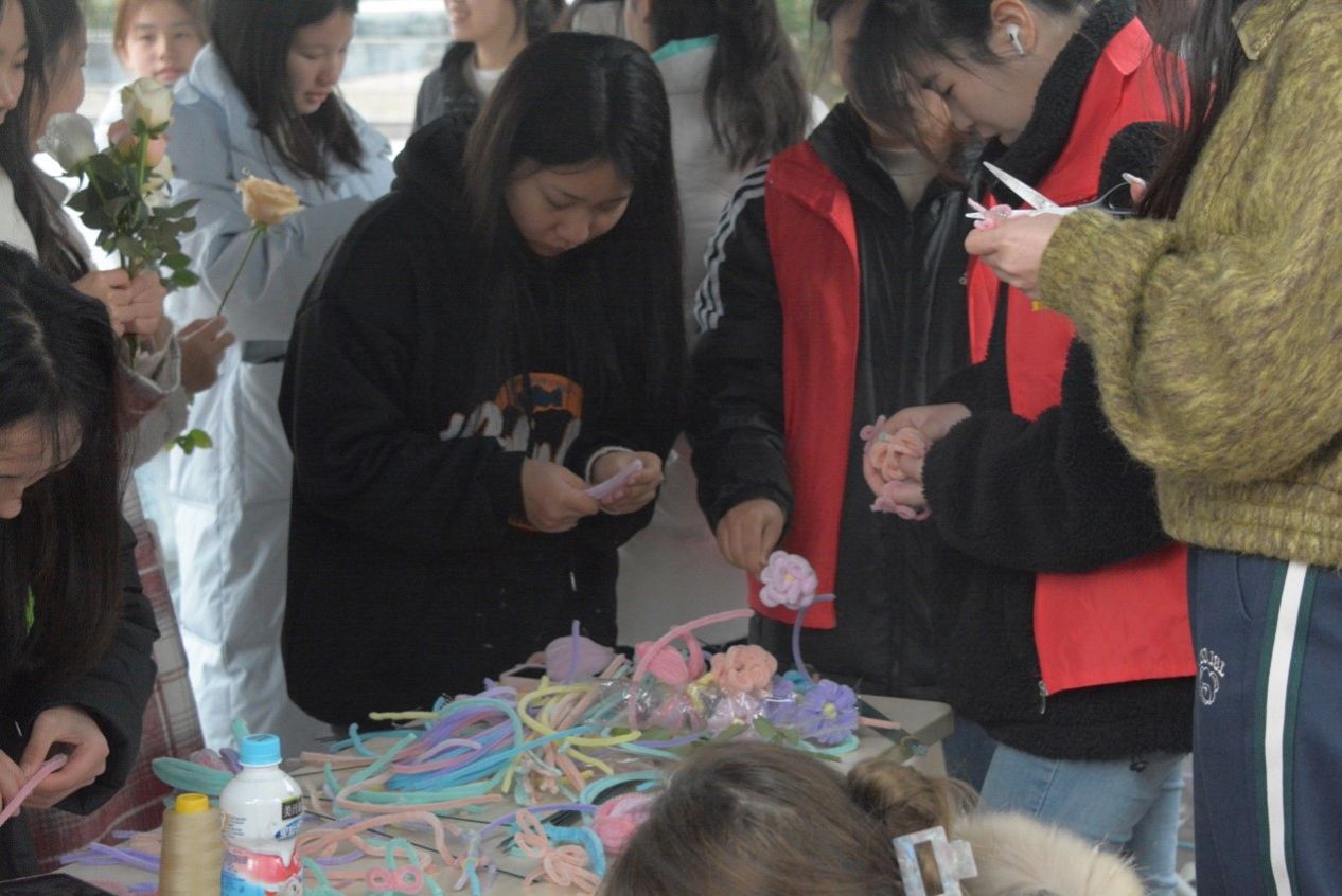 这次活动以关爱女生,展现女生风采为主要内容,通过开展 “寻找自己的芳华”打卡墙、“永不凋零的花朵”手工艺制作、“美妆·穿搭”小课堂分享等系列活动,充分发挥女生们的能动性。花朵制作环节,大家心灵手巧,互帮互助,享受着属于自己的节日快乐。
