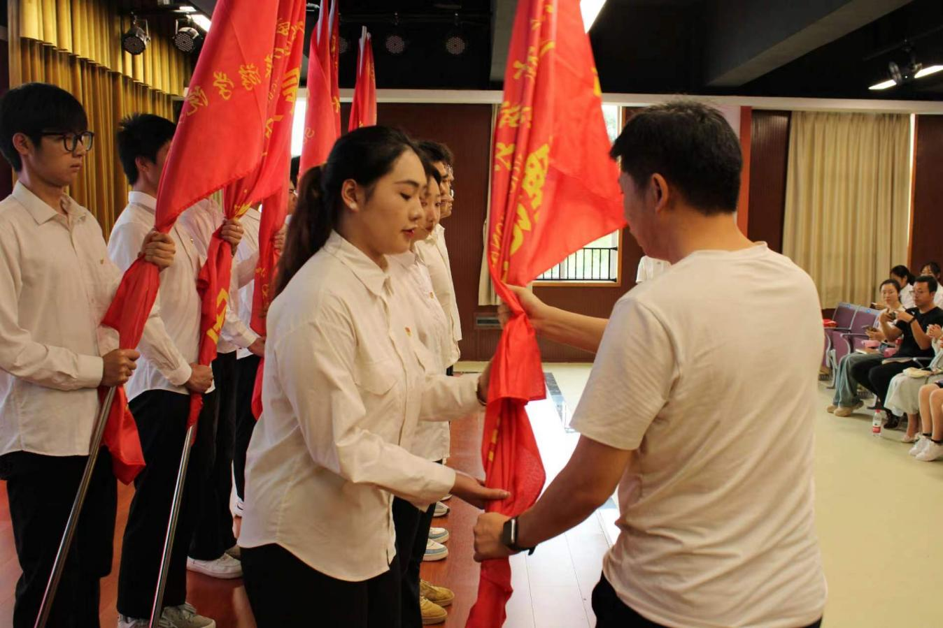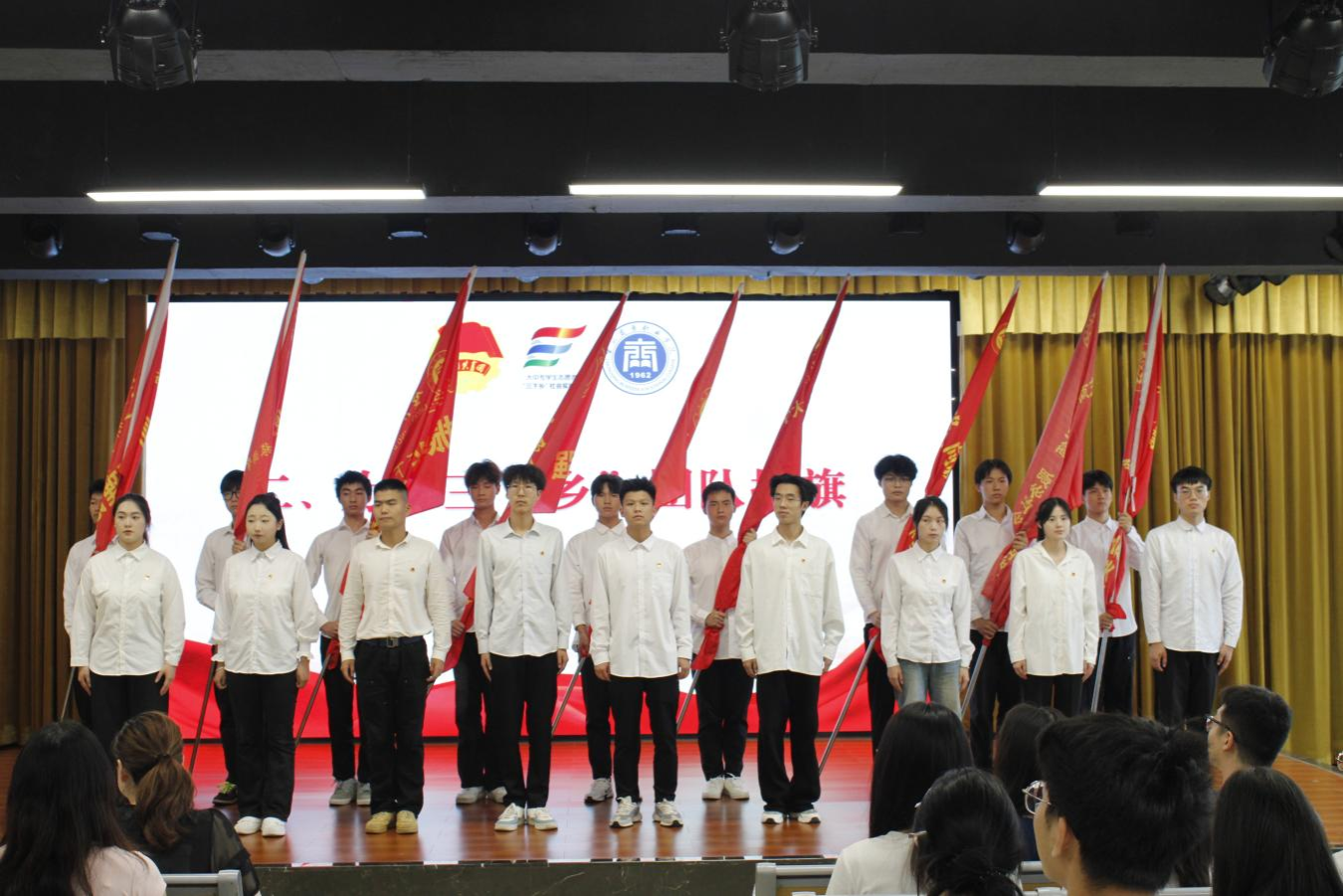 活动伊始,全体人员肃立,奏唱国歌,庄严肃穆的气氛弥漫全场。随后,党委学生工作部部长、团委书记为学校“三下乡”各社会实践团队代表授旗。接着,全体学生代表起立,进行庄严的出征宣誓,誓言铿锵有力,展现了他们的决心和勇气。紧接着,党委学生工作部部长、团委书记对同学们提出三点希望: 一是希望大家谦虚谨慎受教育,希望同学们在实践中发扬不怕苦、不怕累的精神,向农民和基层干部虚心请教、认真学习。二是希望大家发挥所学长才干,坚持理论联系实际,紧紧结合自己专业,把所学知识与基层的丰富实践结合起来,在实践中汲取营养、增强本领。三是希望大家挺膺担当做贡献,希望同学们牢固树立为人民服务的观念,扑下身子,到基层、到农村、到社区,尽心尽力为群众办实事、解难事,用自己的实际行动服务社会。最后,特别强调了安全问题,希望全体队员增强安全意识,服从管理,统一行动,在社会实践中增长才干,在艰苦环境中砥砺品质。