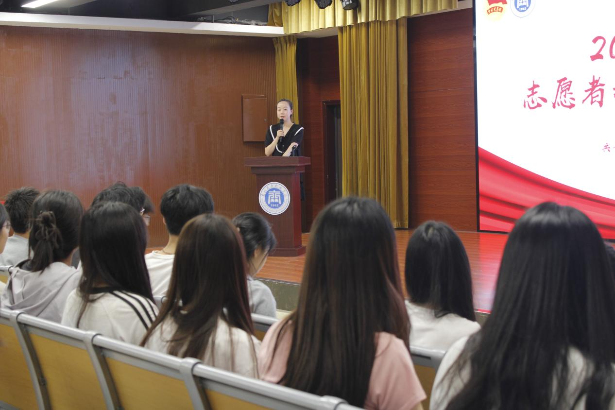 在培训中,校团委老师围绕迎新基本流程、志愿者工作要求、生命安全等内容进行讲解。其中详细介绍了新生报到的地点、手续办理、宿舍安排等。同时,还强调了志愿者的服务态度和沟通技巧,要求志愿者以热情、耐心、周到的服务,让新生和家长感受到学校的温暖和关怀。