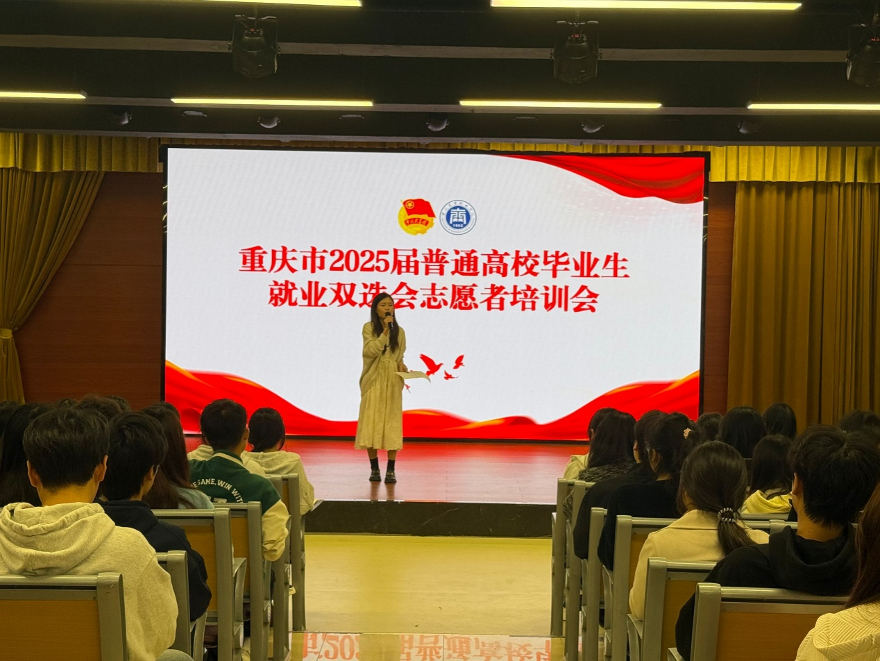 为推进2025届普通高校毕业生就业双选会工作有序进行,确保活动顺利开展,11月11日中午12:30,于320学生活动中心开展了志愿者培训会。招就处老师、团委老师以及180名志愿者参加。