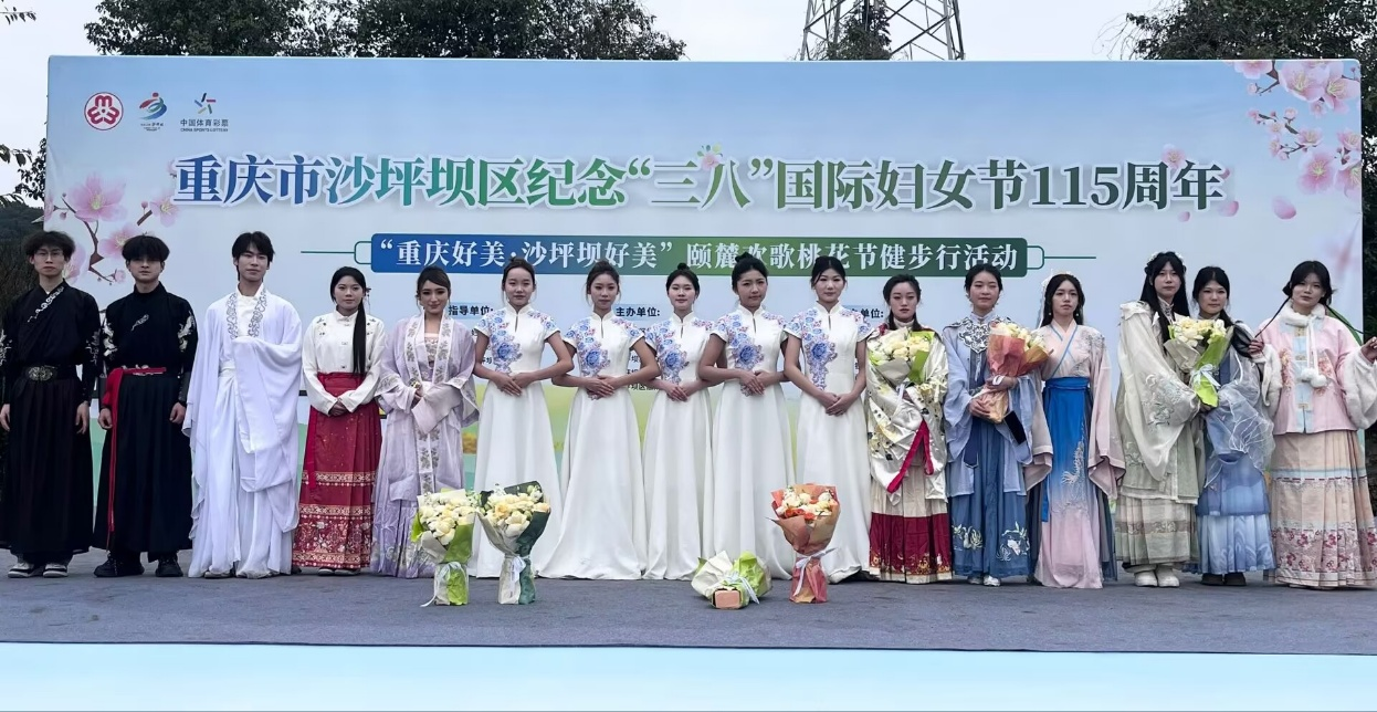 团扇轻摇,清风徐徐。为纪念“三八”国际妇女节115周年,展现巾帼风采,感受乡村振兴成果,2025年3月7日,我校团委受沙坪坝区妇女联合会邀请,组织师生50余名参与在歌乐山歌乐村沿线举办的“重庆好美 沙坪坝好美”颐麓欢歌桃花节健步行活动,展现新时代女性的卓越风采。