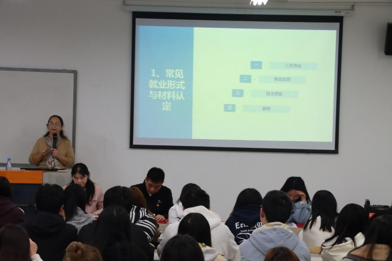随后,学校就业宣讲团张瑜老师开展了就业指导讲座,她聚焦简历优化、面试技巧与职业定位等主题,通过案例分析,帮助学生掌握求职策略,提升就业竞争力,对学生求职具有重要参考价值。