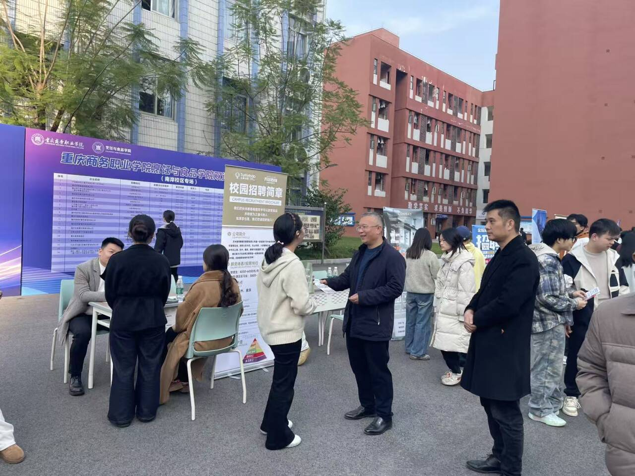 为促进毕业生高质量就业,深化校企合作,11月26日下午,烹饪与食品学院在南岸校区举办了以“金秋启航,驭面未来”为主题的2026届毕业生专场双选会。本次双选会由烹饪与食品学院与招生就业处联合承办,吸引了众多餐饮、酒店、食品类企业前来揽才,现场气氛热烈,秩序井然。