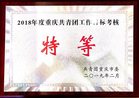 2019年2月28日,共青团重庆市委组织召开共青团重庆市委五届四次全会暨共青团重庆市第五届委员会各专门委员会会议,总结重庆共青团2018年工作,表彰2018年度工作先进集体和个人,安排部署2019年工作。我校团委在2018年度重庆市共青团工作目标考核中获得“特等奖”,这是我校第二次获此殊荣。