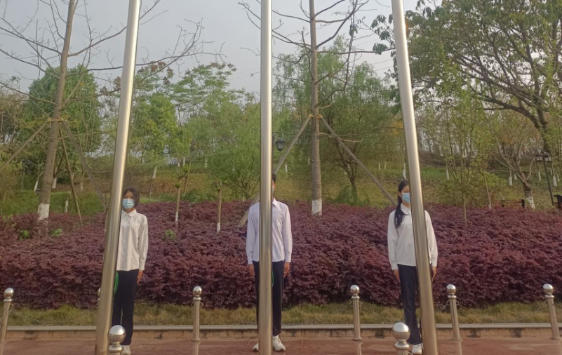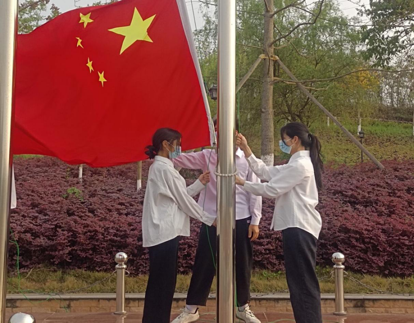 2022年3月24日早上,由胡青青,唐雪芬,冉征程三名队员排列整齐,迈着矫健的步伐,在《歌唱祖国》旋律中齐步走到升旗台前,“向国旗--敬礼”随着一声洪亮的口令升旗手冉征程奋力挥臂将国旗抛向空中。伴随着雄壮、嘹亮的国歌声,将鲜红的五星红旗徐徐升起,高高的飘扬在操场上空。嘹亮的国歌声,鲜艳的国旗下,庄严肃穆的氛围中,爱国爱校、奋发图强的情感在每个同学的心中激荡,每日的升旗仪式增强了学生的责任感和使命感,提高了学生的爱国热情,培养了学生的爱国情操。对于肩负重任的当代大学生,国旗引领我们找到了前进的方向,激励我们不断前进,为学校的发展和祖国繁荣富强做出更多的贡献