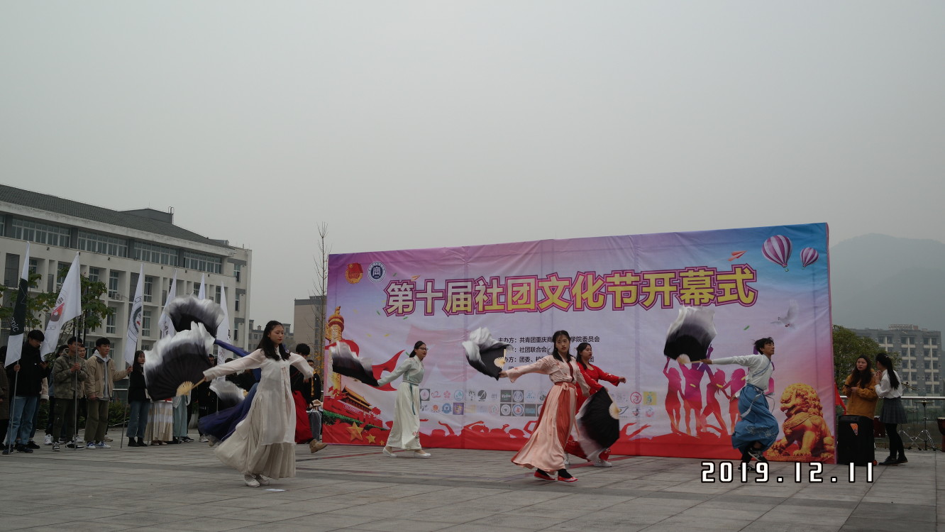 街舞协会动感的旋律拉开了开幕式的帷幕。之后,瑜伽协会、国标舞协会、渝风汉韵汉服协会、打击乐社团、排球社、守护天使团队合唱社等学生社团精彩的表演更是把全场推向高潮。整个开幕式热闹非凡,缤纷多姿,歌声与舞蹈相映衬,古风与现代相结合。最后,团委书记邓健宣布社团文化节正式开幕。