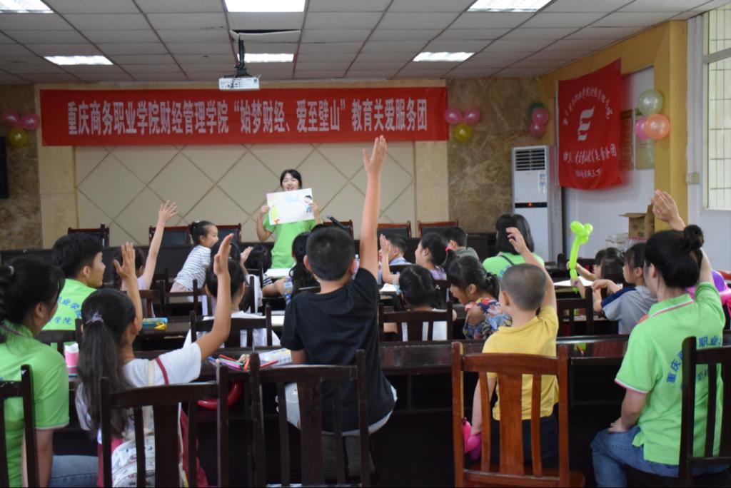 2019年07月9日,重庆商务职业学院财经管理学院“始至财经,爱至璧山”教育服务关爱团20名志愿者走进重庆市璧山区马家桥社区服务中心开展大学生暑期三下乡社会实践活动,马家桥社区20多名留守儿童参加了此次活动。