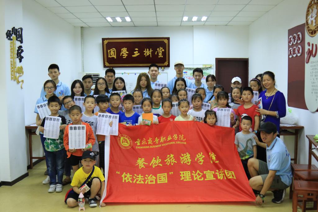 骄阳熠熠,五彩生辉,2019年7月9日,在近一个月紧锣密鼓的筹备与计划后,重庆商务职业学院餐饮旅游学院的26名学生组建“普法宣传,激扬青春”依法治国宣讲团,踏上了前往陈家桥桥东社区的旅程,本次三下乡的活动主题是“弘扬法治教育,构建和谐社会”,旨在全面贯彻落实《中共重庆市委重庆市人民政府关于打赢打好脱贫攻坚战三年行动的实施意见》和《共青团投身打赢脱贫攻坚战三年行动的意见》精神。