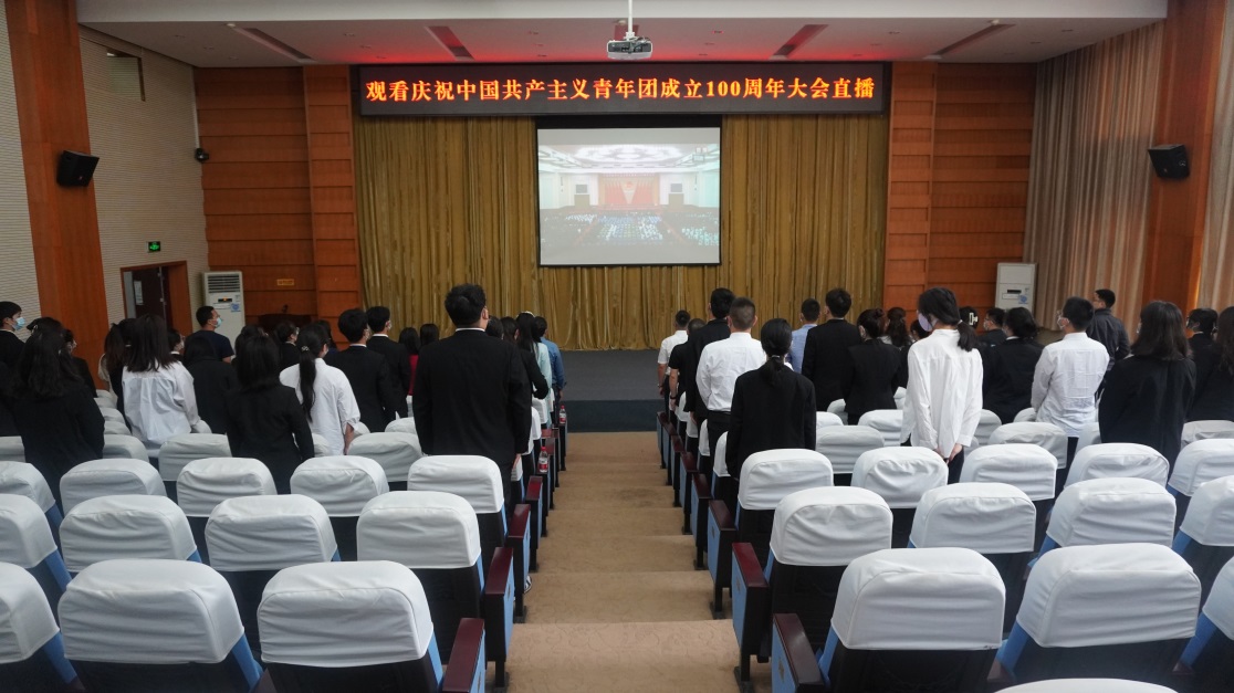 今天上午,学校组织师生集中观看庆祝中国共产主义青年团成立100周年大会,此次专题视频会分为主会场(办公楼第一会议室)、分会场(学生活动中心320、各班级教室)同步进行。我校党委书记谭勇,副院长舒鸿;党委办公室、组织人事处、宣传部、保卫部、团委等部门人员;各二级学院党政领导,团总支负责老师,学工人员,青年师生代表;校团委工作人员,团学组织学生骨干、青马学员等参加此次活动。按照常态化疫情防控要求,与会人员分别在主、分会场,共同聆听习近平总书记的重要讲话,温情回顾中国共青团的发展史。现场气氛庄严而热烈。