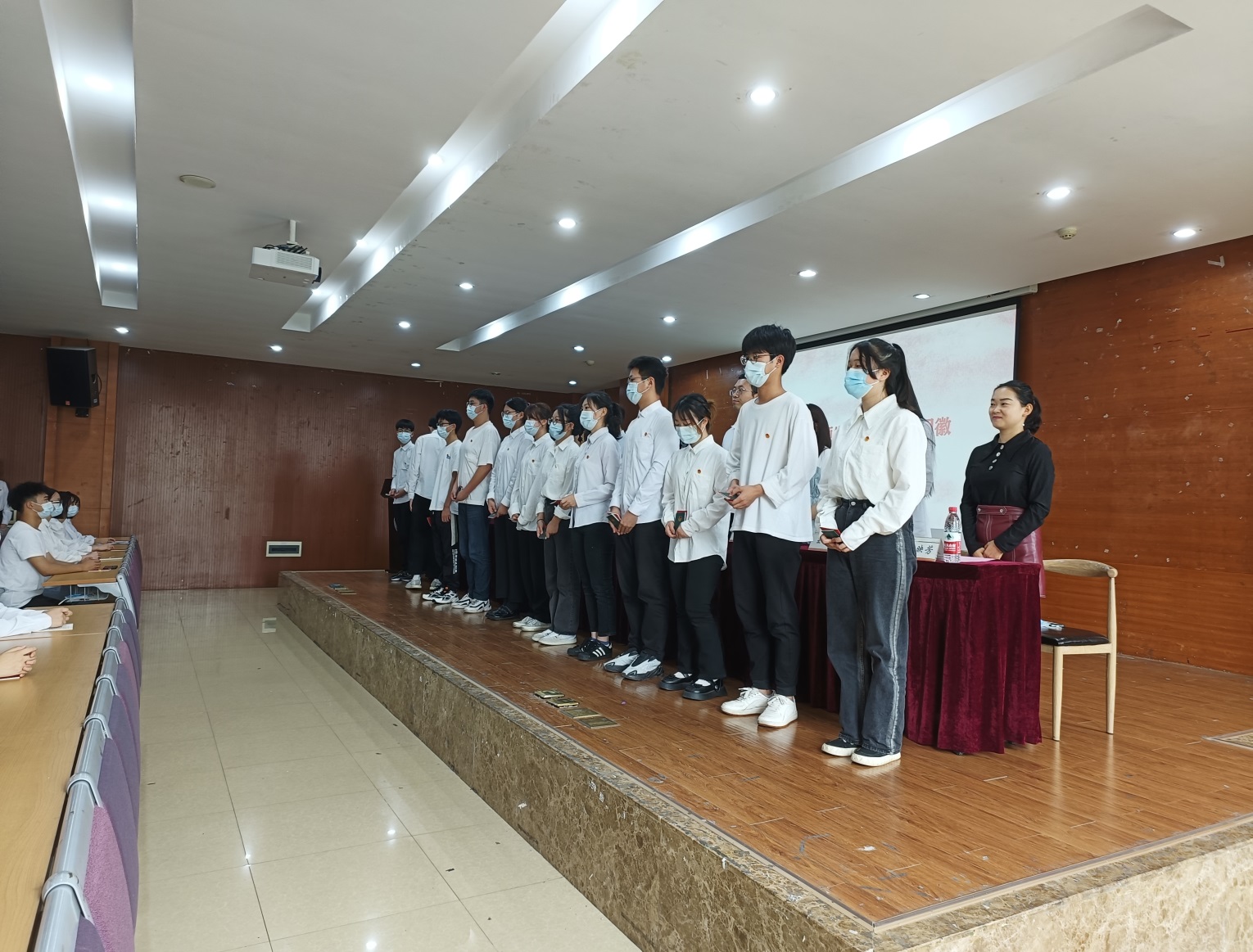 531日中午1210分,在学生活动中心举行了2022年度新团员入团仪式。团委书记邓健、副书记白净、团委委员、二级学院团总支书记和新发展团员参加了仪式,会议由团委委员徐艳霞主持。