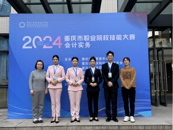 本次大赛由重庆市教育委员会主办,汇聚全市众多优秀职业院校代表,赛事竞争激烈,标准严格。王婧副教授指导的张粤琴、廖艳红、袁子怡、杨遥四位同学,以扎实的专业基础、精准的财务分析能力以及卓越的团队协作精神,在实操技能、财务核算、风险管控等多个环节表现突出,凭借精益求精的专业素养和稳定的临场发挥,成功斩获金奖,顺利晋级全国赛。