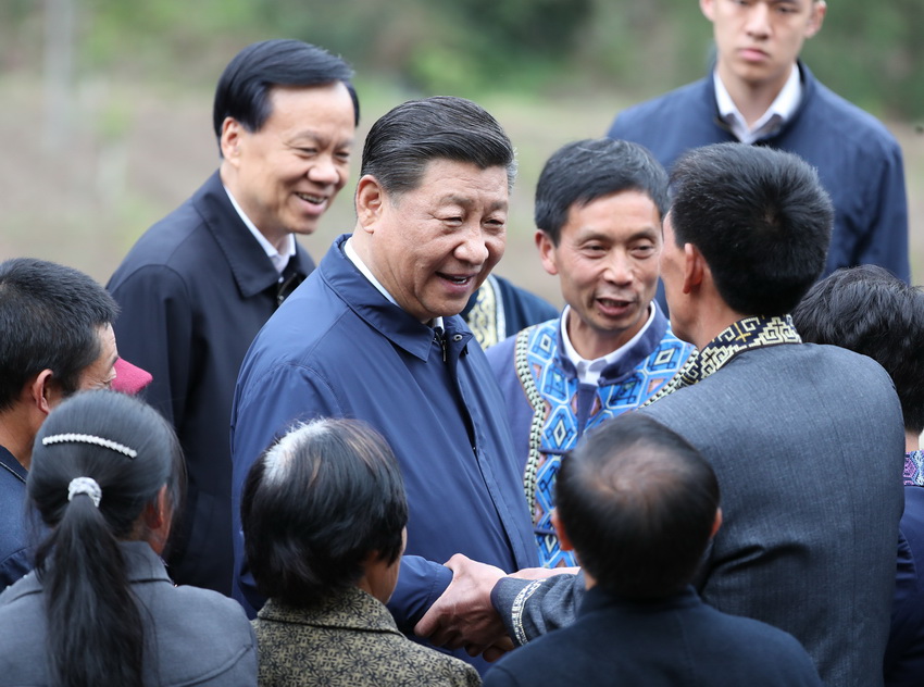 4月15日至17日,中共中央总书记、国家主席、中央军委主席习近平在重庆考察,并主持召开解决“两不愁三保障”突出问题座谈会。这是4月15日下午,习近平在石柱土家族自治县中益乡华溪村同村民亲切交流。新华社记者 丁海涛 摄