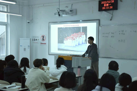 马克思主义学院教师伊龙在《毛泽东思想和中国特色社会主义理论体系概论》第一课中,与学生共同回顾了北京冬奥会开幕式精彩瞬间,热议了习近平总书记给苏翊鸣回信和关于冬奥会的感受,感悟到匠心独运的中国元素和厚重的东方文化底蕴。他向学生讲到,与2008年北京奥运会相比,此次北京奥运会更体现了大国的自信与从容,其背后是中国综合国力和国际地位的提升,我们更加坚定中国特色社会主义的“四个自信”。
