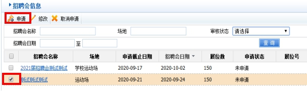2.选中要参加的双选会,点击左上角“申请”