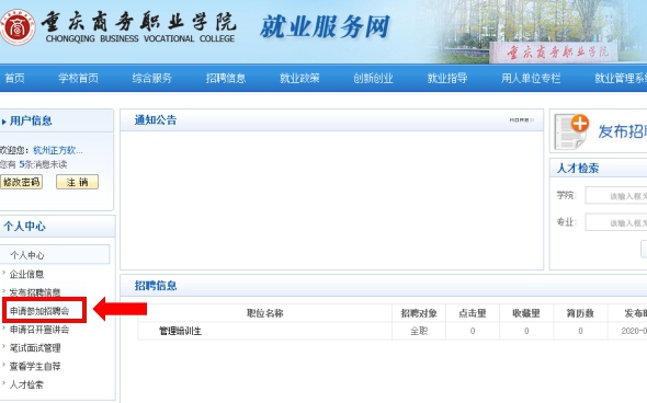 1.登录成功后,点击左边“申请参加招聘会”