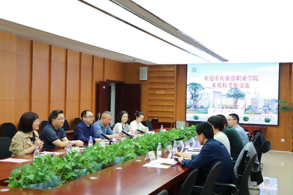 4月13日15:00重庆旅游职业学院大学生创新创业指导中心主任罗玉高、大数据与智慧旅游系主任郑健江、财经与旅游商贸系主任高翔、外国语与涉外旅游系主任于才年一行来我校考察交流,我校招生就业处处长冉启江组织教务处处长李焱、实训管理中心主任黄永、会计学院院长沈静、经济贸易学院副院长、计算机网络技术专业负责人王芳进行了座谈。