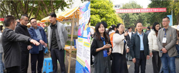 重庆市学生就业与创新创业服务中心副主任徐珮杰、学校副校长贾小波及在家校领导亲临现场与用人单位进行交流,鼓励在场毕业生抓住春招关键期,大胆投递简历,提升面试技能,早日落实毕业去向。