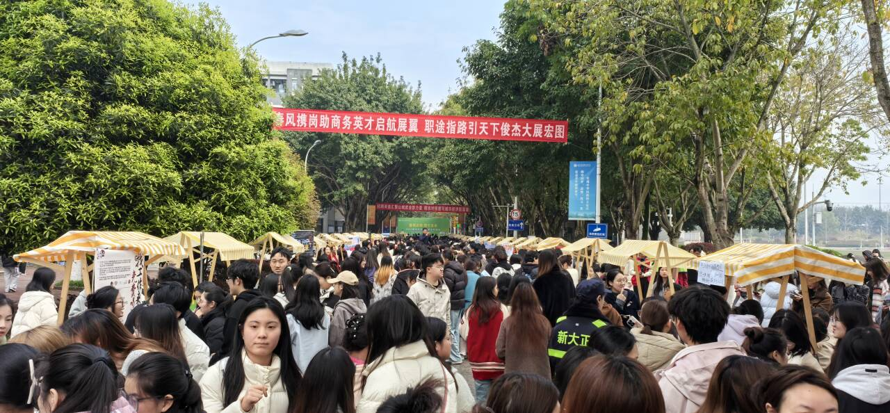 3月23日,学校在北山社区黄桷树大道成功举办“春风送岗·职引未来——2025届毕业生精准就业对接会”。本次活动由重庆市商务委员会、重庆市学生就业与创新创业服务中心指导,学校主办,吸引53家优质企业及2000多名应届毕业生参与。