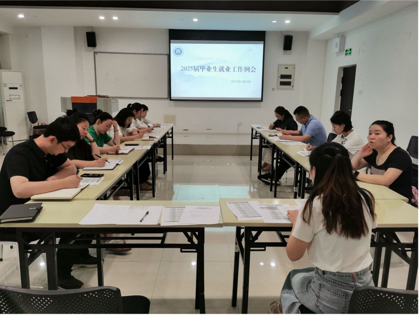 6月10日下午,聚焦毕业季冲刺阶段重点任务,学校在就业宣讲室(2107)召开2025届毕业生就业工作例会。各二级学院就业干事、招生就业处相关人员参会。