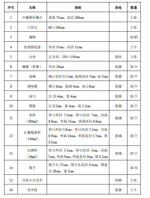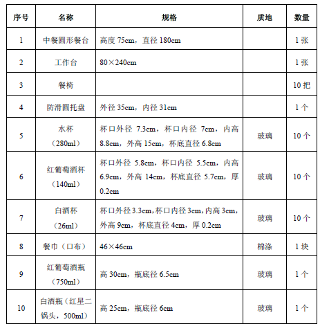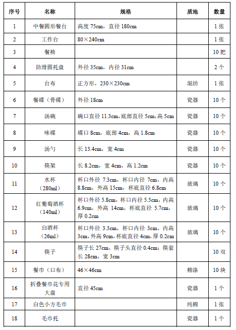 (一)中餐宴会摆台考试器材用具