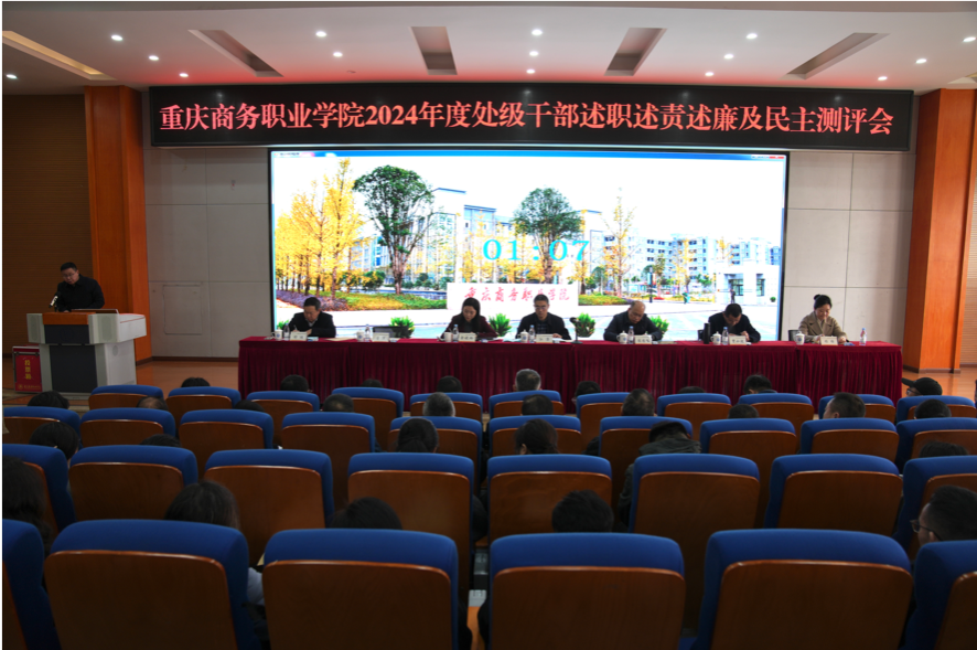 会议采取书面述职与现场述职相结合的方式进行。3名二级学院党政负责人代表围绕党建统领、“双高”建设、教育教学、科学研究、学生管理等方面作现场述职,3名职能部门负责人代表围绕业务工作、服务保障、作风建设等方面作现场述职,其他处级干部作书面述职。述职中,大家全面总结2024年工作,深入谋划2025年工作,既亮出工作答卷,又查摆短板弱项,也畅谈下一步工作打算,为推动2025年学校内涵高质量发展打下了坚实基础。